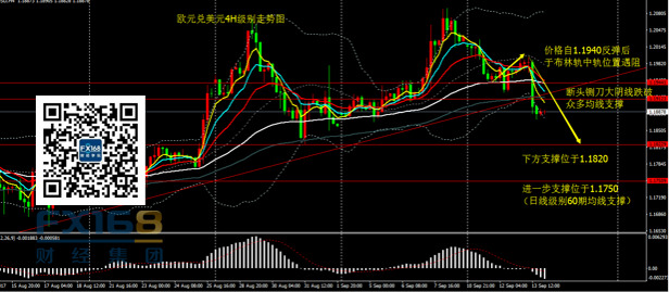 欧元兑美元:日线看,昨日欧元收出一根中阴线,价格跌破1.1940支撑,尾盘收于1.1885附近,短期短线死叉,死叉情绪略显谨慎;4H级别,昨日价格在1.1940受支撑反弹至布林轨中轨所在1.1990位置后回落,一根大阴线直接跌破1.1940,空头力极为强劲,MACD能量柱看,零轴之下能量柱放大,短线情绪有多转空。昨日表示,价格跌破1.19前,维持看多。但目前价格已跌破该位置,且有进一步下探的风险,多头暂时离场观望。策略上,激进者可尝试价格反弹至1.1910附近短空,目标1.1830,进一步目标1.1750;稳健者待价格调整至1.1750以及1.1830后再行操作多单。
