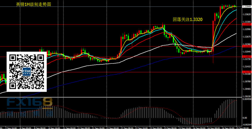 英镑兑美元:日线看,昨日英镑收出大阳线,价格创出近一年新高;4H级别,昨日价格上破1.3320压制,多头动能强劲。昨日1.3220破位多单以及1.3180附近激进多单获得大幅盈利,目前多头趋势明显,有仓位的投资者可继续持有;没有仓位投资者关注价格回落至1.3320附近做多机会,目标暂设1.34,进一步目标1.36.