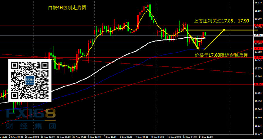 白银:日线看,昨日白银自17.60附近反弹,尾盘收出一根带长下影线的小阳线;4H级别看,昨日白银在4H100期均线受支撑反弹,目前价格重新站上60期均线的上方,证明多头趋势未改变 。策略上,昨日17.70激进型多单和17.60附近稳健型多单目前均有盈利,止损上移至17.75附近,目标暂设17.90,进一步目标18关口。按照之前分析,目前白银多头趋势完好,价格下破17.50前,看多思路不变。没有仓位投资者关注晚间数据,价格回落17.55-17.60仍是不错的进多机会。