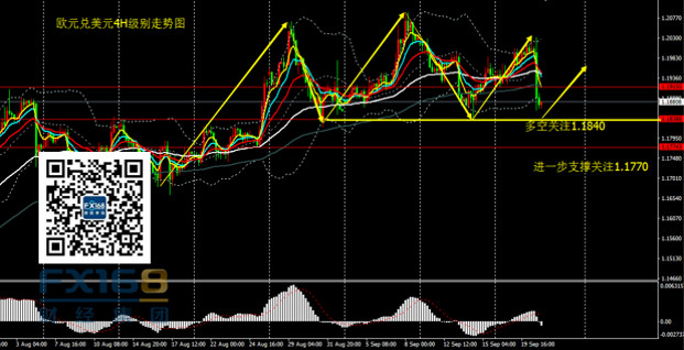 欧元兑美元:日线看,昨日欧元收出大阴线,价格跌破短线支撑,最低触及1.1860.观察欧元近期走势,有形成头肩顶的迹象,但仅仅是迹象而已,因为真正确定还需价格有效下破颈线位置1.1840. 策略上,重点关注1.1840附近支撑,没有仓位投资者继续可以关注该位置做多机会,价格跌破1.1840前,维持看多思路不变。若跌破1.1840,短线恐有进一步下探1.1770的风险。