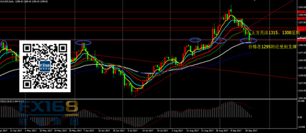 黄金:日线看,昨日价格反弹1315附近乏力,之后开启下跌,尾盘收出大阴线。价格在1295附近如期企稳,证明该位置的支撑效果。策略上,已有1295附近多单的投资者继续持有,首先关注1301压制,仓位重的可于1301减仓;没有仓位的投资者继续重点关注1295支撑,由于欧盘开盘后市场还要消化一部分消息,警惕价格在欧盘再次回落,之后在1290-1295附近盘整后企稳,因此,稳健者还需等待更多企稳信号。