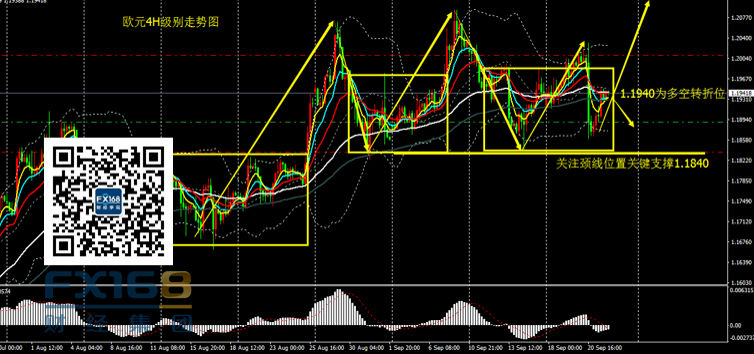 欧元兑美元:日线看,昨日欧元收出小阳线,价格受1.1860出现企稳反弹,目前正测试1.1940附近压制。1.1940为周三大阴线二分之一位置,压制不容小觑,今日可重点关注。昨日曾分析,“真正确定还需价格有效下破颈线位置1.1840”,目前这一观点依然有效。策略上,有低位多单的可在1.1940附近减仓后带好跟进保护损,关注4H价格能否站上该位置,若站稳1.1940,有望进一步上探1.20。没有仓位的可暂时观望,等待下周一操作(避免周末德国大选发生意外)。