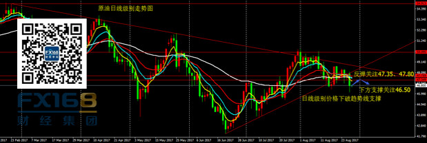 原油:昨日原油收出一根带下影线的中阴线,价格下破三角形震荡区域下轨支撑,空头占据主力。目前原油下方46.50支撑较强,策略上,激进者关注价格反弹至47.35、47.75附近后做空机会,止损设50点,目标暂设46.50,下破46.50,进一步看向45.50,稳健者需关注价格能否连续三天处于突破口下方。