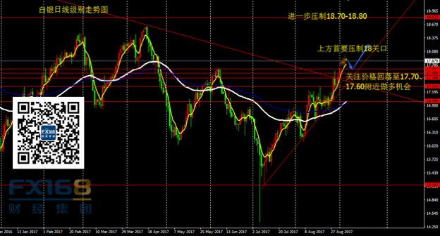 白银:日线看,昨日白银收出一根小阳线,价格创出新高,触及18关口。不过,昨日白银未能跟随黄金一起补缺口,进场机会尚未给到。策略上,多头仍耐心等待价格回落至17.70附近进多机会,止损17.55,目标暂设18,进一步目标18.50。