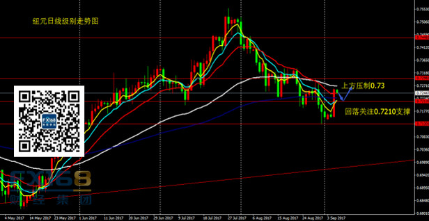 纽元兑美元:昨日纽元收出一个大阳线,价格大幅反弹。目前价格已站上4H60期均线,短期市场情绪由空转多。策略上,关注价格回落至0.7210附近做多机会,止损设30点,目标0.73。若后市能够站上0.73,则纽元涨势将能延续。下方支撑关注0.72、0.7150.