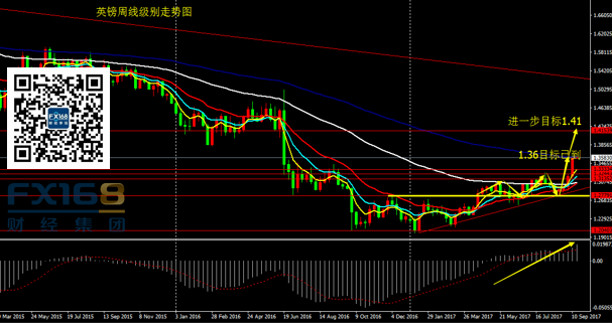 英镑兑美元:周线看,上周英镑收出大阳线,价格触及1.36目标;日线看,上周四、周五英镑收出两根大阳线,价格创出近一年新高,多头动能强劲。策略上,前期1.32附近多单,目前1.36目标已到,可考虑减仓,待价格回落后再行入场操作;回落重点关注1.3430以及1.3340附近支撑,本周美联储缩表概率很大,若缩表,英镑短暂下跌恰好是买入机会,目标暂设1.36,进一步目标1.40。