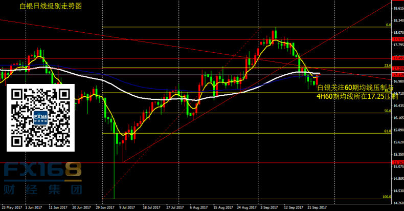 白银:日线看,昨日白银再次测试16.80附近支撑后反弹,尾盘收出一根中阳线,价格暂时企稳。目前日线级别60期均线所在17.15以及4H60期均线所在17.25是重要压制,若今日站上17.25,后市新一波反弹开始,目标可看向18关口。操作上,激进者可待价格回落至17关口布局多单,稳健者待价格上破17.25后,右侧交易进多。