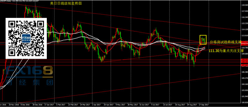美元兑日元:昨日美元兑日元收出一根中阴线,价格再次测试趋势线支撑。目前4H60期均线所在111.30为重要支撑位置,若今日价格跌破该位置,后续美日会重新进入小三角形震荡区域。下破该位置之前,维持看多。操作上,激进者继续关注111.30 (4H60期均线)附近支撑,价格首次触及该位置,仍可尝试做多。稳健者可暂时观望为主。