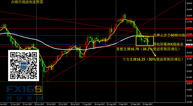 白银:日线看,昨日白银在上探日线级别60期均线所在17.25后回落,尾盘收出一根大阴线,市场空头力量偏强。目前白银较为弱势,昨日下跌扼杀了反弹的信号,暂时不建议做多。操作上,激进者反弹关注17关口的压制及做空机会,稳健者暂时观望。