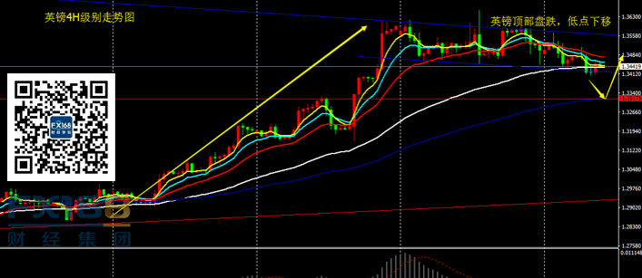 英镑兑美元:日线看昨日英镑继续收出螺旋桨阴线,价格一度跌破4H60期均线支撑,之后重新夺回这一位置。目前英镑位于顶部盘整,低点不断下移,多头弱势,空头力量稍强,短期价格或将延续回落。操作上,昨日有于1.3430附近介入多单的投资者,若今日有机会反弹至1.3460或者1.3470可伺机保本或者小赚离场;没有仓位的投资者关注价格能否守住昨日低点1.3410,跌破该位置,激进者可小仓尝试做空,目标1.3320;稳健者依然关注这一波回落至1.33附近的买入机会。整体来说,我们并未改变中期看多英镑的思路,但美元强势下,英镑或面临一波回落调整。