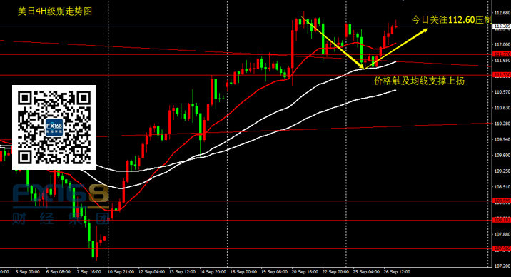 美元兑日元:昨日美元兑日元收出一根中阳线,价格在测试趋势线支撑后拉升,价格收复前一交易日全部跌幅。价格处于趋势线支撑上方,意味着,短期内向上测试114的风险犹存。操作上,昨日价格回落至4H60期均线附近出现企稳,之后上行近百点,若有持仓的投资者,可于目前位置先行减仓;之后重点关注112.60位置能否被上破;没有仓位的投资者暂时观望,待价格上破112.60后采取右侧交易。