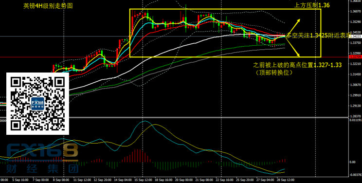 英镑兑美元:昨日英镑下探1.3330附近后受20期均线支撑反弹,尾盘收出一根带长下影线的小阳线。但从收线看,价格未能站上4H60期均线所在压制,整体走势仍偏弱势。今日继续关注4H60期均线所在1.3430这一位置,只要价格位于该均线下方,维持短线看空的思路。操作上,关注4H60期均线收线,目前英镑整体走势高位震荡,目前处于中间位置可上可下,价格上破1.3450前,不建议做多,而价格下破1.3420前,空单也不建议介入。稳健者暂时观望,等待价格调整到位后,顺应大趋势,重新介入多单。