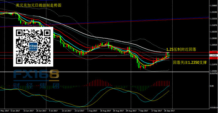 美加:日线看,昨日美加在1.25附近受压制,尾盘收出一根小阴线。(昨日曾明确表示,自价格跌破60期均线所在1.35展开下跌以来,这是第一次价格重新测试该均线支撑;若这一位置失守,那么美加看空的思路将作出重大调整,但若在此关键位置收出K反信号,依然可以尝试波段进空。)短周期看,昨日30分钟价格在1.25附近上冲后快速回落,收出射击之星光脚中阴线,暗示压制强劲,之后价格回落。目前美系货币均在关键位置出现回落,若有美加高位空单的投资者继续持有,之后可关注1.2420这一位置支撑,若下破这一支撑,短线有进一步下探1.2350的风险。没有仓位的投资者暂时观望,关注晚间数据公布前后的交易机会。