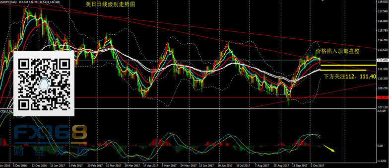 美元兑日元:在经过连续的顶部盘整后,昨日美日收出穿头破脚中阴线,价格最低抵达112整数关口,之后出现反弹,收于111.30附近,暗示下方支撑较为强劲。价格整体仍维持盘整,酝酿行情爆发。操作上,昨日短线空单于112止盈后,仍持有美日空单的投资者带好跟进损继续持有,若今日价格跌破112,可下看111.40;若持有112附近多单的投资者,也可考虑现价112.40离场;稳健投资者关注下方111.40支撑和做多机会。