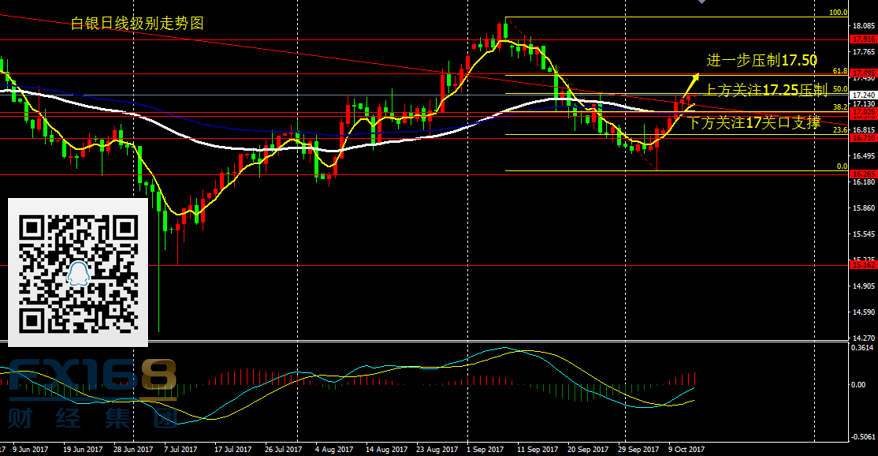 白银:日线看,昨日白银小幅回落至1H60期均线后再度拉升,尾盘收出一根带小下影线的小阳线,市场情绪偏多,但17.25的压制效果犹存。操作上,不建议做空,激进者关注价格回落至17关口的支撑和做多机会,稳健者可暂时观望,待价格站稳17.25后回落进多。
