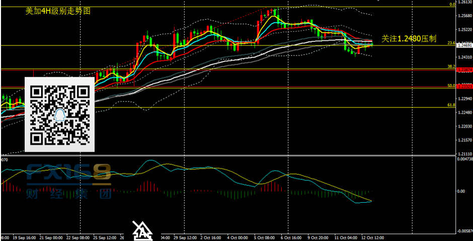 美加:日线看,昨日美加跌至1.2430附近后反弹,尾盘收出一根小阳线,不过我们发现价格并未收回周三所下破的60期均线,MACD能量柱红柱转为绿柱,双线死叉,短期市场情绪仍是中性偏空。4H和1H级别60期均线压制效果明显,因此短线操作上我们已1.2480为多空分界点,激进者仍可尝试1.2480附近高空,止损1.2510,目标暂设1.2430,进一步目标1.2390、1.2330,稳健者暂时观望,待数据公布后再行操作。