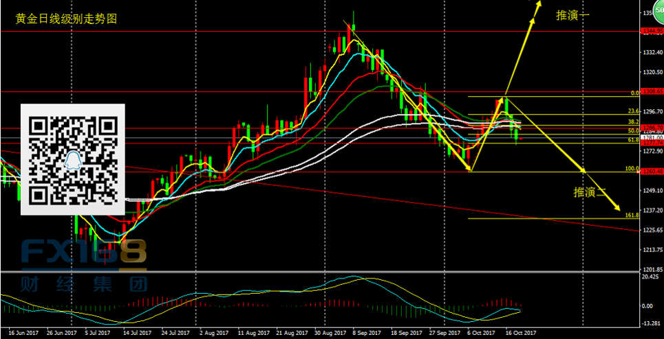 黄金:昨日黄金再次收阴,价格最低触及1277,之后反弹,尾盘收于1280附近。昨日分析过黄金后市的两种走势,目前价格尚未走出明确方向,这两种推演的可能性都很大。目前短周期中4H以及1H关键位置支撑被下破,价格中性偏空,但1H级别MACD底背离也暗示价格短线有反弹的可能。操作上,激进者仍可尝试高空,关注价格反弹至1287-1288附近的压制和做空机会,目标暂设1280;若价格未经反弹直接下破1277(61.8%回撤支撑),则进一步下看1260(前期低点).稳健者暂时观望为主,因为周线级别尚不能判断价格是否会重回跌势。