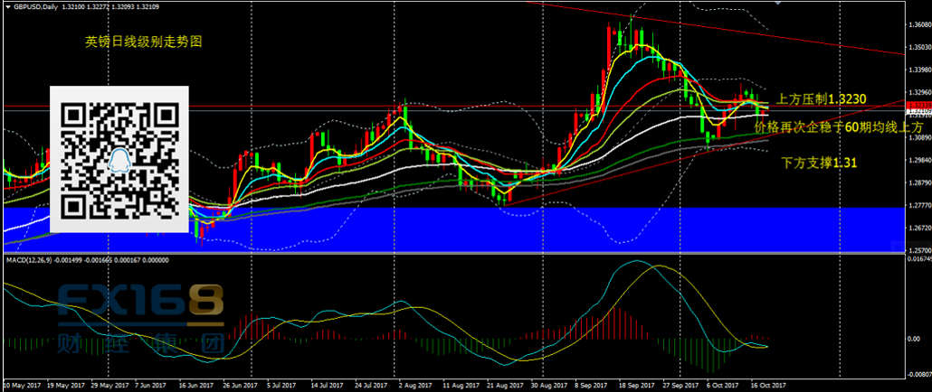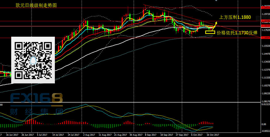 欧元兑美元:昨日欧元收出一根带小下影线的阳线,两个交易日在同一位置1.1735企稳,证明这一位置的支撑作用。4H级别MACD金叉,能量柱转为红柱,价格有望重新站上60期均线。前期曾分析,在欧洲央行10月份宣布缩减QE的计划前,欧元大涨与大跌恐难出现,更多会依托1.1880压制与1.1650支撑高位震荡,目前这一观点有效,不过明显发现震荡区间在收窄。操作上,目前位置多空均不佳,激进者利用 1.1880压制与1.1650支撑高抛低吸,稳健者暂时观望。