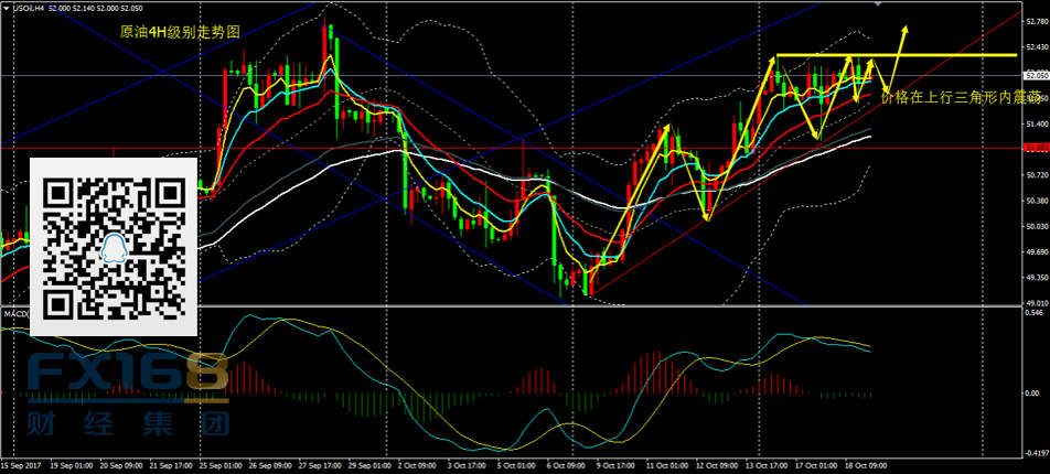 原油:昨日价格收出带长下影线的十字阳线,价格整体走势偏多,但涨势乏力,价格未能创出新高;4H级别看,昨日价格回抽20期均线后选择上行,下方支撑明显。整体看,价格有陷入三角形震荡整理的迹象,不过没有明显看空信号,因此,操作上,激进者继续关注趋势线支撑,以低多为主,稳健者暂时观望。