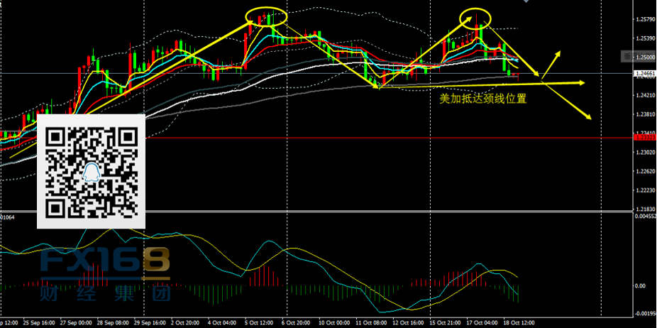美加:昨日美元对加元收出带小上影线的阴线,价格跌落至60期均线下方。4H级别看,与昨日分析一致,价格双顶迹象明显,目前价格已抵达颈线位置1.2450附近。按照之前分析,若价格跌破1.2450确认目前的顶部,后市美加下行的概率将大幅上升。但跌破这一位置前,还存在价格继续在1.2450-1.26区间走箱型震荡的可能,因为上一次价格同样抵达150期均线出现反弹。操作上,激进者关注价格反弹1.25附近压制及做空机会,目标暂设1.2450,进一步目标1.23;稳健者暂时观望,待价格走出震荡区间后操作。