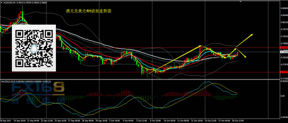 澳元兑美元:昨日澳元收出十字阴线,价格再次于0.7810企稳,有进一步上探0.7880的迹象。4H级别60期均线多次测试,证明该位置的支撑效果。目前价格仍位于0.7830-0.7880的震荡区域之内。操作上,继续耐心等待价格上破或者下破后再行操作。