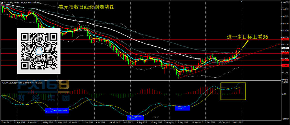 周五公布的美国三季度GDP年化季率增长3.0%,前值为3.1%,这是美国经济自2015年年初以来最好的两季度表现,美元在数据公布后短线拉升,最高触及95.15。