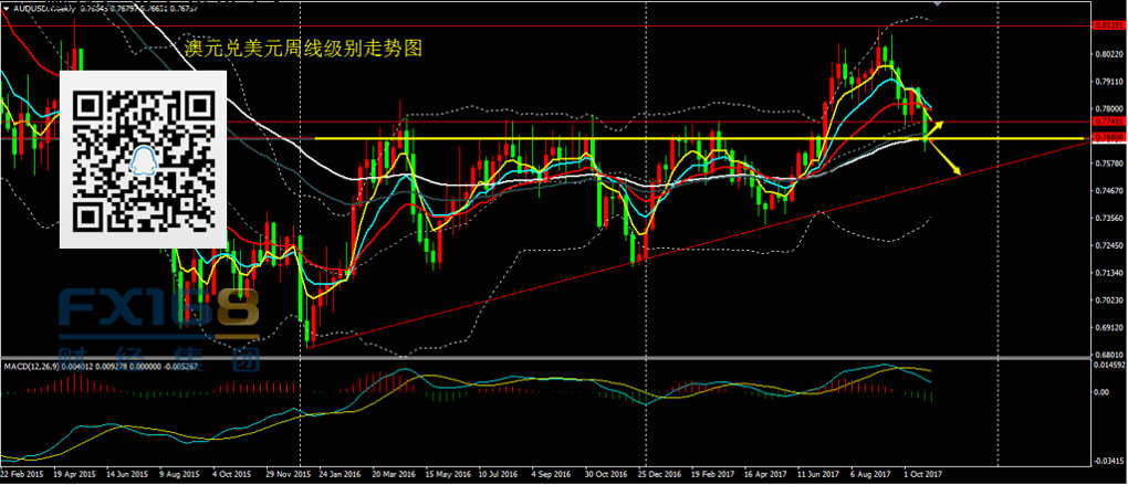 澳元兑美元:周线看,澳元上周收出大阴线,价格抵达0.7680目标,并有下破周线级别60期均线的风险。日线看,上周澳元再下一城,价格强势跌破0.7740附近前低,之后延续跌势,目前价格零轴下方死叉,仍有下挫的风险。不过短周期的1H以及4H发出反弹信号,因此不宜追空。操作上,目前澳元上方压制位于0.7680、0.7740附近,首先重点关注价格在1H60期均线0.7680附近的表现,在这一位置收出明显K反信号,可尝试进空;但如果价格直接上破0.7680,意味着这一波反弹反弹并未结束,价格有反弹0.7740的风险。而0.7740这一位置是非常重要的压制和做空机会,若有机会再次触及,可尝试进空。