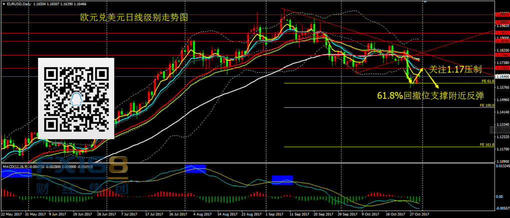 欧元兑美元:日线看,昨日欧元收出小阳线,配合前期阴线,价格有形成早晨之星K线组合的迹象,4H级别光脚大阳线暗示短线欧元仍存在反弹的需求。目前看,这一波欧元回落至61.8%扩展位附近企稳反弹,不过MACD零轴下方死叉,短线市场情绪偏空。我们暂时将这一波反弹视为前期下破关键支撑后的反弹,价格压制位于1.1680-1.17(顶底转换位置)。操作上,关注反弹1.1680-1.17附近压制及做空机会。