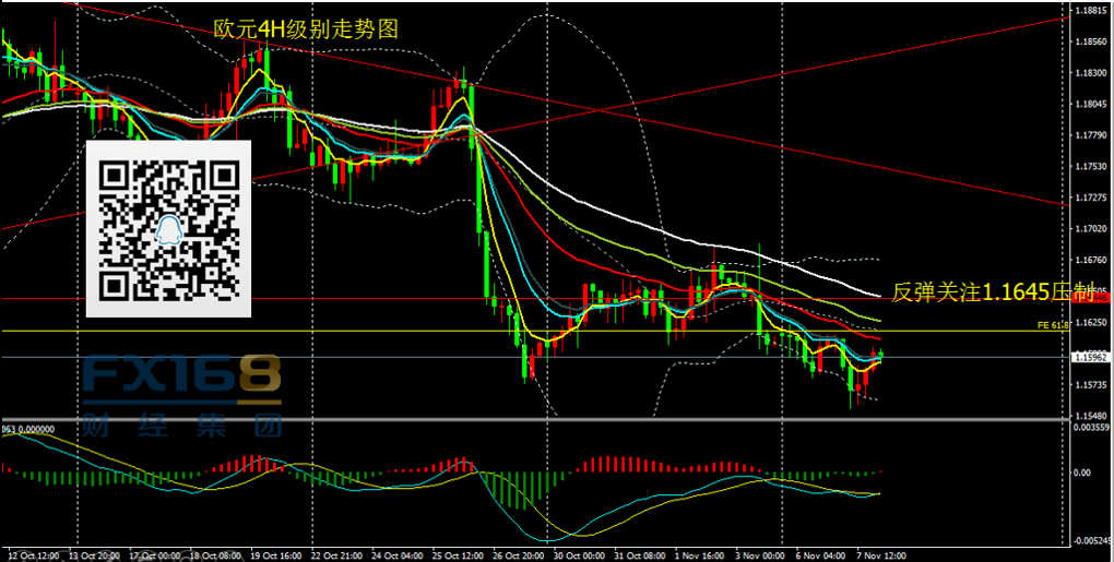 欧元兑美元:昨日欧元一度下挫至1.1550,之后反弹,尾盘收出锤子阴线。4H级别MACD底部明显背离,能量柱转为红色,短线价格有反弹需求。操作上,昨日已建议1.1685加仓空单先行离场;今日关注价格反弹1.1640-1.1650附近做空机会,在关键压制附近配合K反信号,可尝试进空,止损30点,首要目标1.1560,进一步目标1.150。