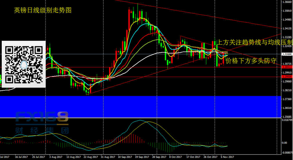 英镑兑美元:日线看,昨日英镑在1.3175附近受阻回落,价格下跌近70点后快速拉升,目前价格再次交投于1.3170附近。昨日价格走势表明下方1.3130为重要的多头防守区域,而上方1.3175附近压制效果也比较明显。操作上,日内英镑仍有继续上探的风险,但是做多空间不大,激进者关注价格反弹1.32-1.3210附近的做空机会,稳健者暂时观望。