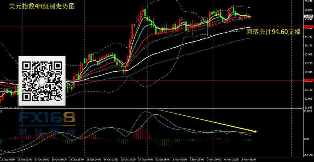 美元指数:昨日美元指数一度上探95.15,之后回落,尾盘收出小阳线;4H级别95.15附近仍表现出明显压制,价格如果想突破这一位置,仍需新的做多力量介入。操作上,目前美元多头走势不变,重点关注价格回落94.60附近的做多机会,首要目标95.15,进一步目标96。