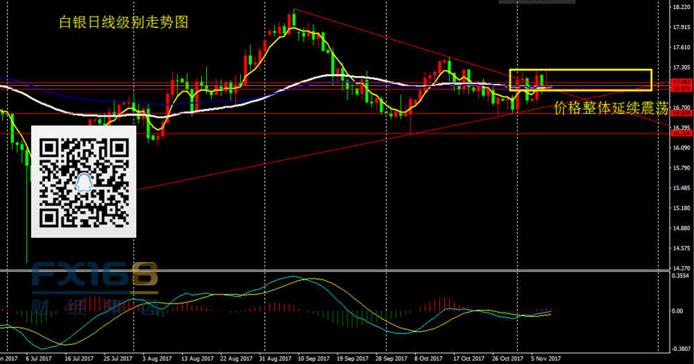 白银:日线看,昨日白银收出带长上影线的射击之星阳线,价格再次上探17.25附近压制,之后回落,收线收于17关口附近。目前白银走势震荡,价格下方16.95-17关口为重要支撑,上方17.20-17.25为重要压制。操作上,维持之前的观点,即白银要确认这一波上涨需周线收于17.20上方,在此之前,激进者可利用震荡区间高抛低吸;稳健者暂时观望。