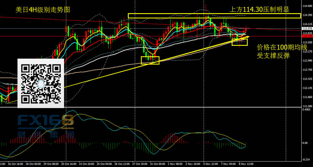 美元兑日元:日线看,昨日美日反弹113.9附近后回落,价格一度下探113.40之后重拾上涨。目前美日下行仍受到4H100期均线以及日线级别20期均线支撑,下方多头支撑明显。但上方长期下行趋势线压制依然有效,短线价格陷入高位震荡。操作上,激进者仍可利用114.20-114.30压制与113.60支撑高抛低吸; 稳健者暂时观望为主。