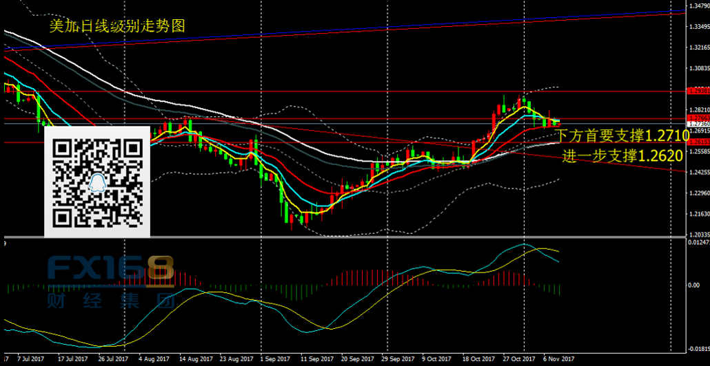 美加:昨日美加收出小阴线,价格跌落至1.2770下方,并测试前低,日内波幅不大。目前美加处于上涨之后的调整中,1.2710成为调整过程的重要支撑,价格想要进一步回落需跌破这一位置;价格上方1.2770以及1.28则是重要的压制。目前尚不能确定这一波回调是否已经结束,因此,操作上,稳健者暂时观望为主,等待价格企稳的信号;激进者关注价格反弹1.2770附近的压制,如果有明显的看空信号,可再次小仓入场空单,止损30点,目标1.2710,进一步目标1.2620;但如果一根大阳线直接上破这一位置,不可做空。