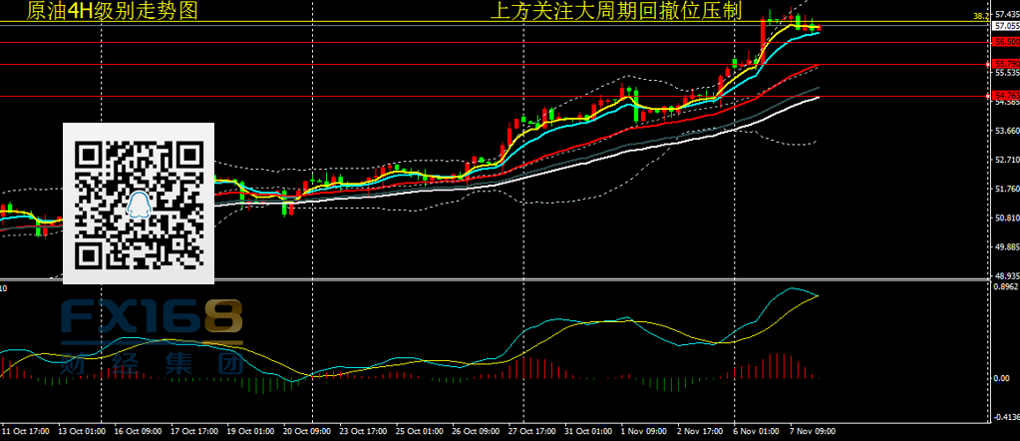 原油方面,昨日EIA数据显示,美国截至11月3日当周原油库存竟大增223.7万桶,和预期的减少287.6万桶截然相反,不过超过预期的汽油以及精炼油库存降幅还是为原油带来短暂利好,美油一度冲高至57.90,之后快速回落。此外,昨日公布的中国贸易数据显示,全球最大原油进口国——中国的原油进口量在10月下跌,也对油价构成了较大压力。