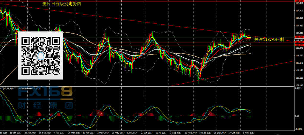 地缘政治方面,昨日朝鲜再度发生士兵叛逃遭枪击事件,加之沙特与黎巴嫩的紧张关系令中东地缘局势升温,市场的避险情绪略有回升,美元兑日元周一欧盘时段一度跌至113.24。不过,随后日本央行行长黑田东彦表示将继续维持强劲的货币宽松政策,以确保通胀积极的发展趋势不会中断,日元回吐此前的涨幅。