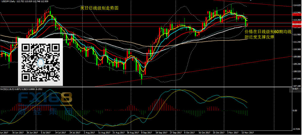 美元兑日元:日线看,昨日美日收出中阴线,价格最低触及112.50附近,之后反弹,从收线看,价格收在了60期均线上方,证明了下方均线的支撑作用。113关口与113.20、113.50是今日美日重点关注的三大压制位,若价格重新站上113,特别是可以站稳在113.20的上方,美日继续上行的风险较大;而如果112.60这一位置失守,后市的美日将测试更大级别三角形震荡区域的下沿位置。操作上,昨日有于日线级别60期均线112.60附近进多的投资者带好跟进损,上方首要关注113,进一步上看113.20以及113.50。