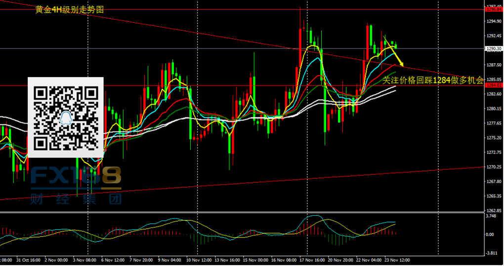 市场情绪方面,昨日中国股市暴跌打压了市场风险偏好情绪,在一定程度上提振黄金避险买需。沪指周四下探3350点,创去年12月12日以来最大单日跌幅;创业板暴跌逾3%,跌破1800点,这使得市场避险情绪有一定的回升。而受美国感恩节休市及日本公共假日休市的影响,美盘时段市场交投平淡,黄金走势相对较为平稳。
