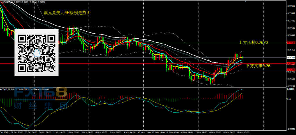 澳元兑美元:日线看,昨日澳元收出穿头破脚小阳线,价格在测试0.76后反弹,目前交投于0.7620附近。操作上,昨日有于价格回踩0.76附近介入多单的投资者可暂时持有,止损移至0.7690附近,上方首先关注0.7635压制,进一步压制位于0.7670以及0.77。