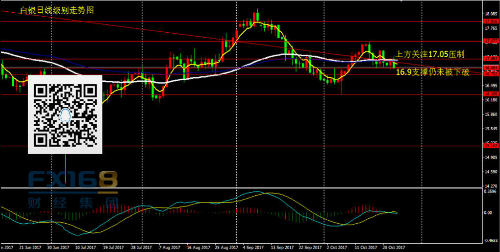 白银:日线看,昨日白银收出中阴线,价格再次回落到50%回撤位支撑17.85-17.90附近。目前白银整体在16.85-17.05区间震荡,目前震荡区间收窄。操作上,暂时关注震荡区间的破位情况,待价格走出震荡区间再行操作。
