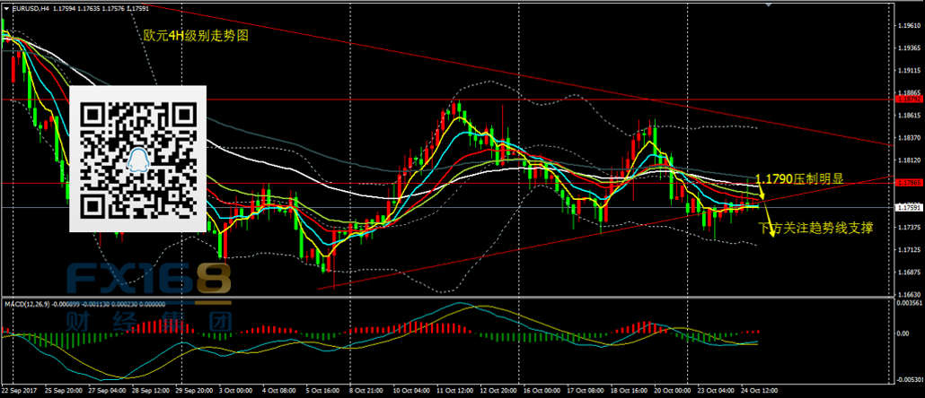 欧元兑美元:日线看,昨日欧元收出小阳线,价格窄幅波动;价格大级别的1.1660-1.20的高位震荡,小级别的三角形震荡,MACD零轴下方死叉迹象,能量柱维持绿柱,短线情绪仍偏空。 4H级别看,昨日价格反弹1.1790后回落,目前交投于1.1760附近。操作上,昨日反弹1.1790附近的空单可继续持有,带好跟进损,目标设于1.1740,跌破这一位置,下看1.1660;没有仓位的暂时观望,在基本面结果出炉前,欧元大涨与大跌恐难出现。