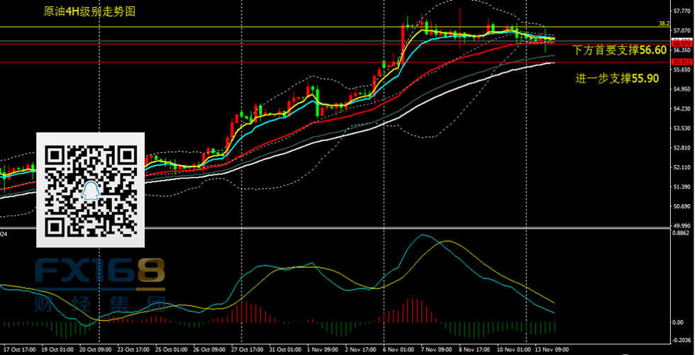 原油:昨日原油继续收出调整阴线,价格以震荡回落为主,不过5期均线仍牢牢支撑价格;4H级别,价格守住20期均线所在56.60一线,MACD双线向下,短线有回落的风险。操作上,今日继续关注56.60这一位置支撑,若价格跌破这一支撑,有进一步下探55.70的风险。操作上,与昨日分析一致,稳健者关注价格回踩55.70附近的低多机会,止损50点,目标57.50,进一步目标60;若价格有效跌破56.60支撑,激进者也可尝试小仓进空,止损57,目标暂设56,进一步目标55.70(做空属于逆势)。